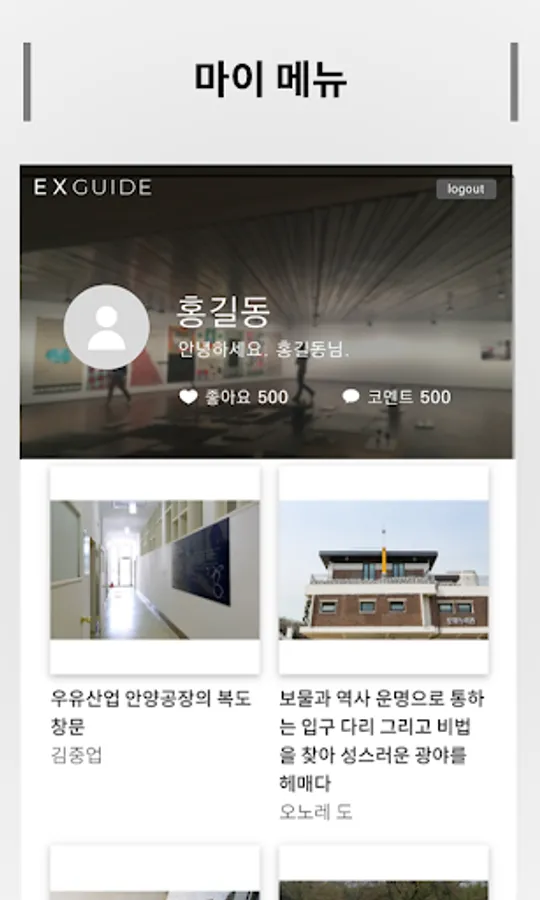 - 마이메뉴 : 안내받은 작품을 보관하고 SNS를 통해 소통