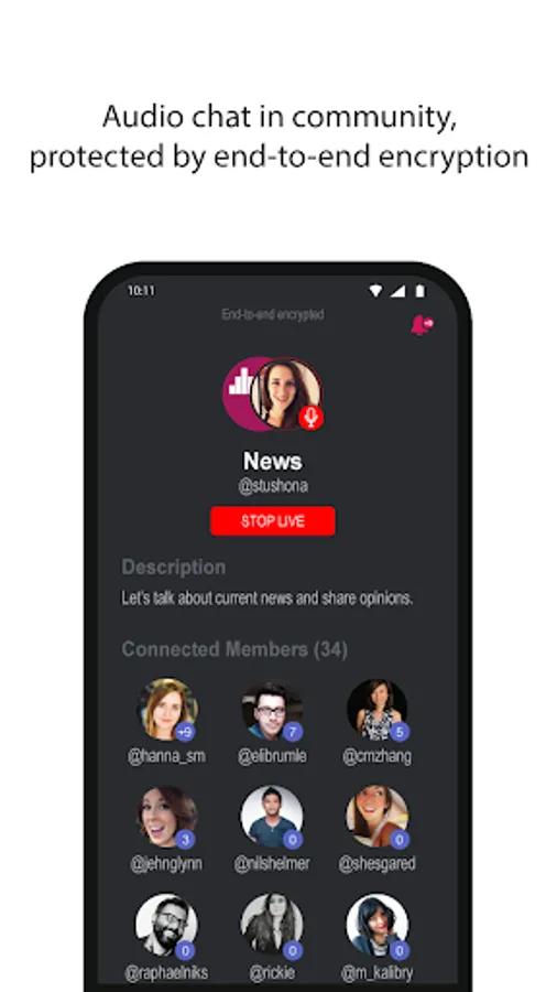 Chitchat is an end-to-end encrypted social audio chat to share fleeting opinions in community securely.