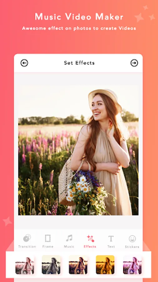 In Photo Slideshow with Music application your video editor with best tools: Music, Frames, Effects, ...