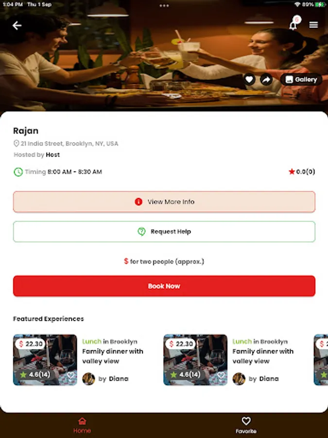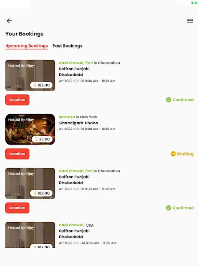 Each host will post menu items, along with available dates, times, and menu ingredients. Foodies can view dining options, ratings, testimonials, and browse photo galleries.
