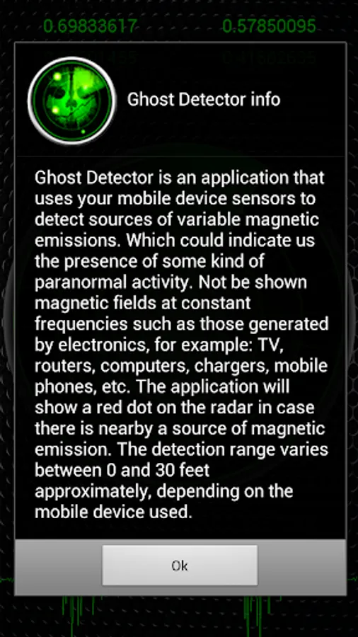 Ghost Detector is an application that uses your mobile device sensors to detect sources of variable magnetic emissions. Which could indicate us the presence of some kind of paranormal activity.