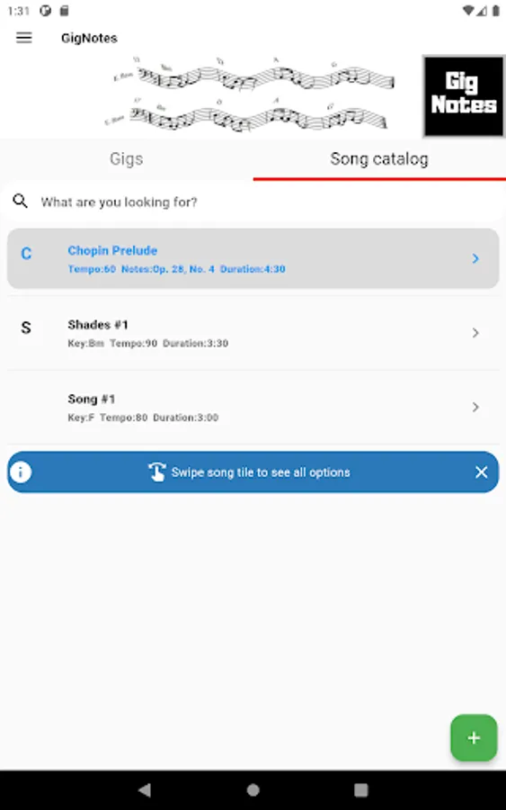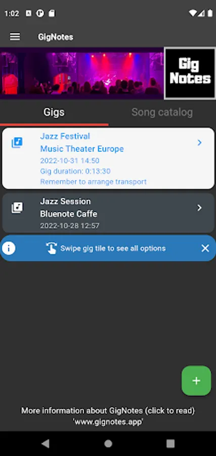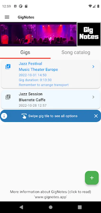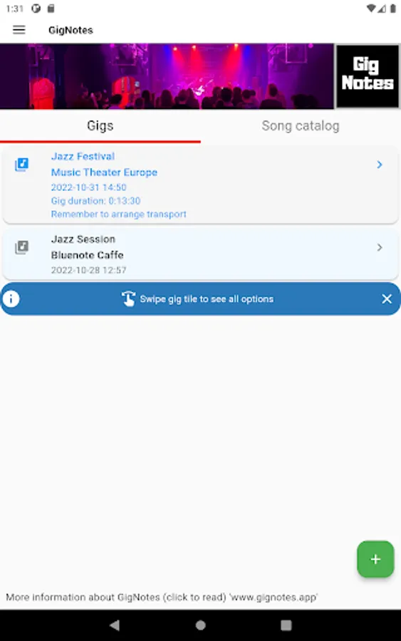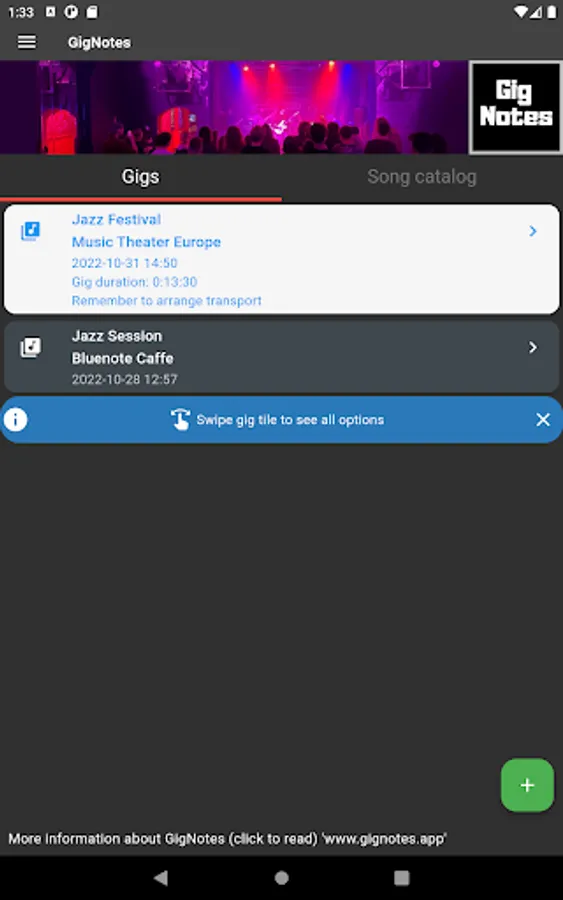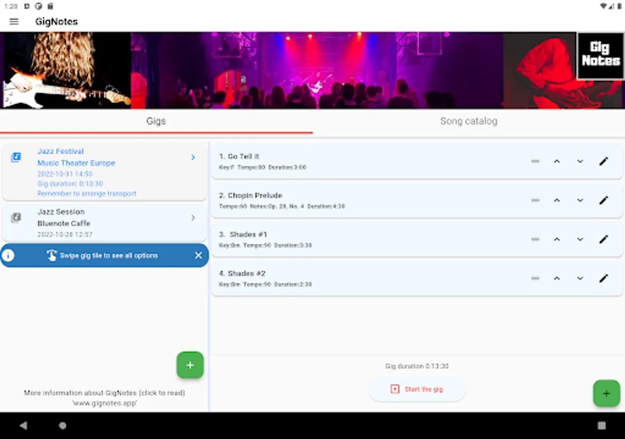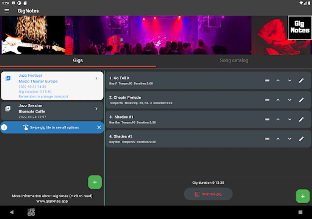 GigNotes allows you to store the previous gigs and use them to create new ones quickly.