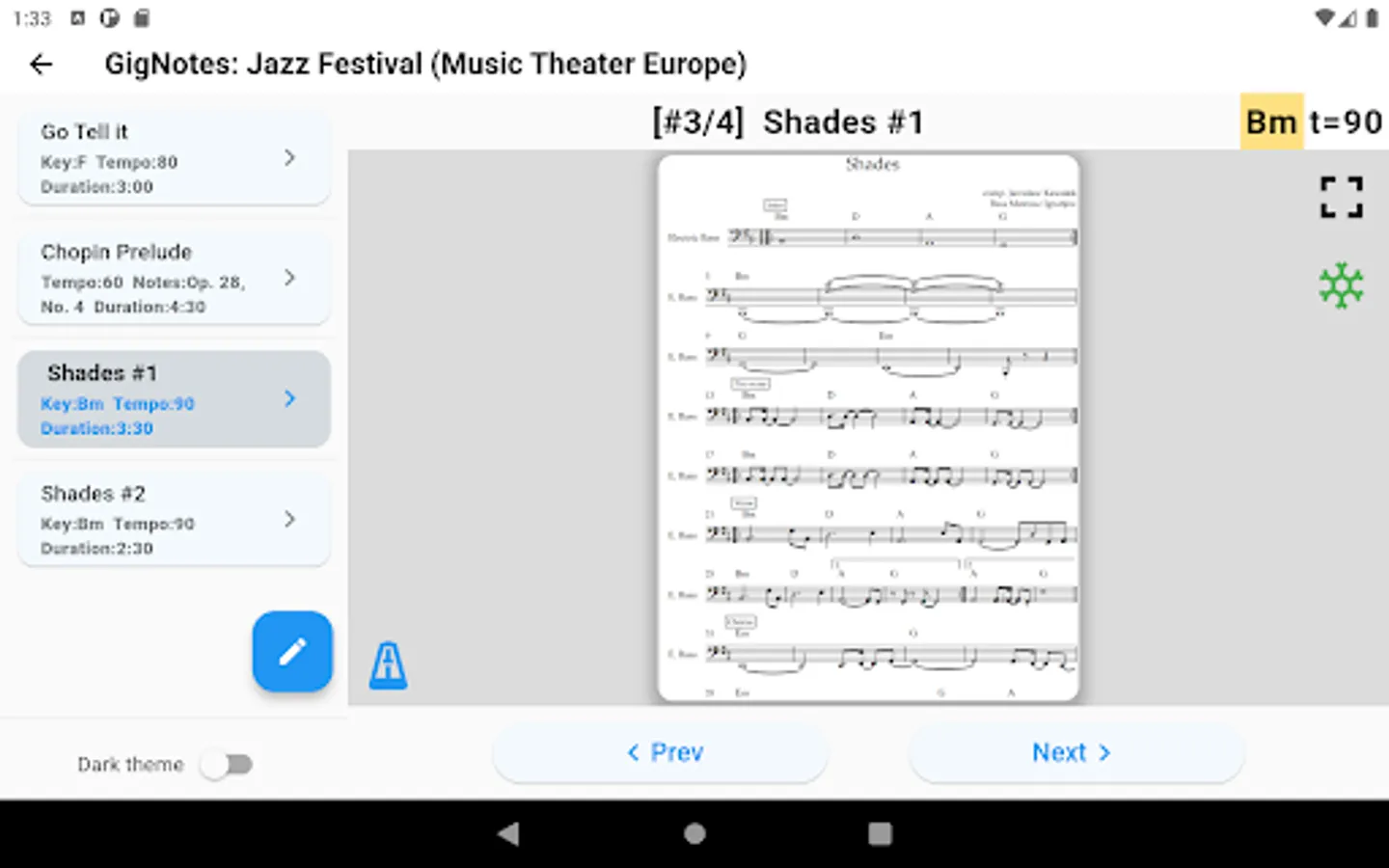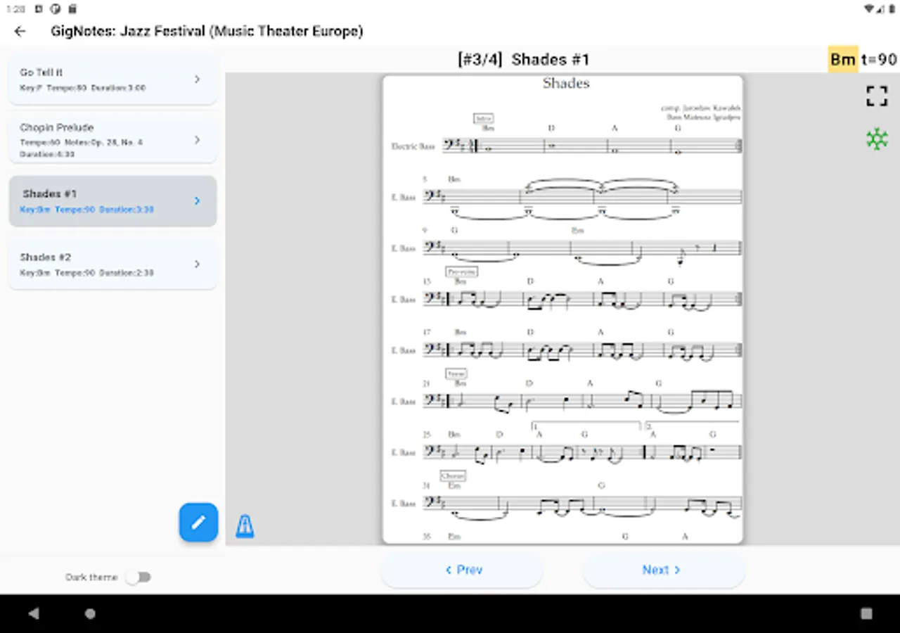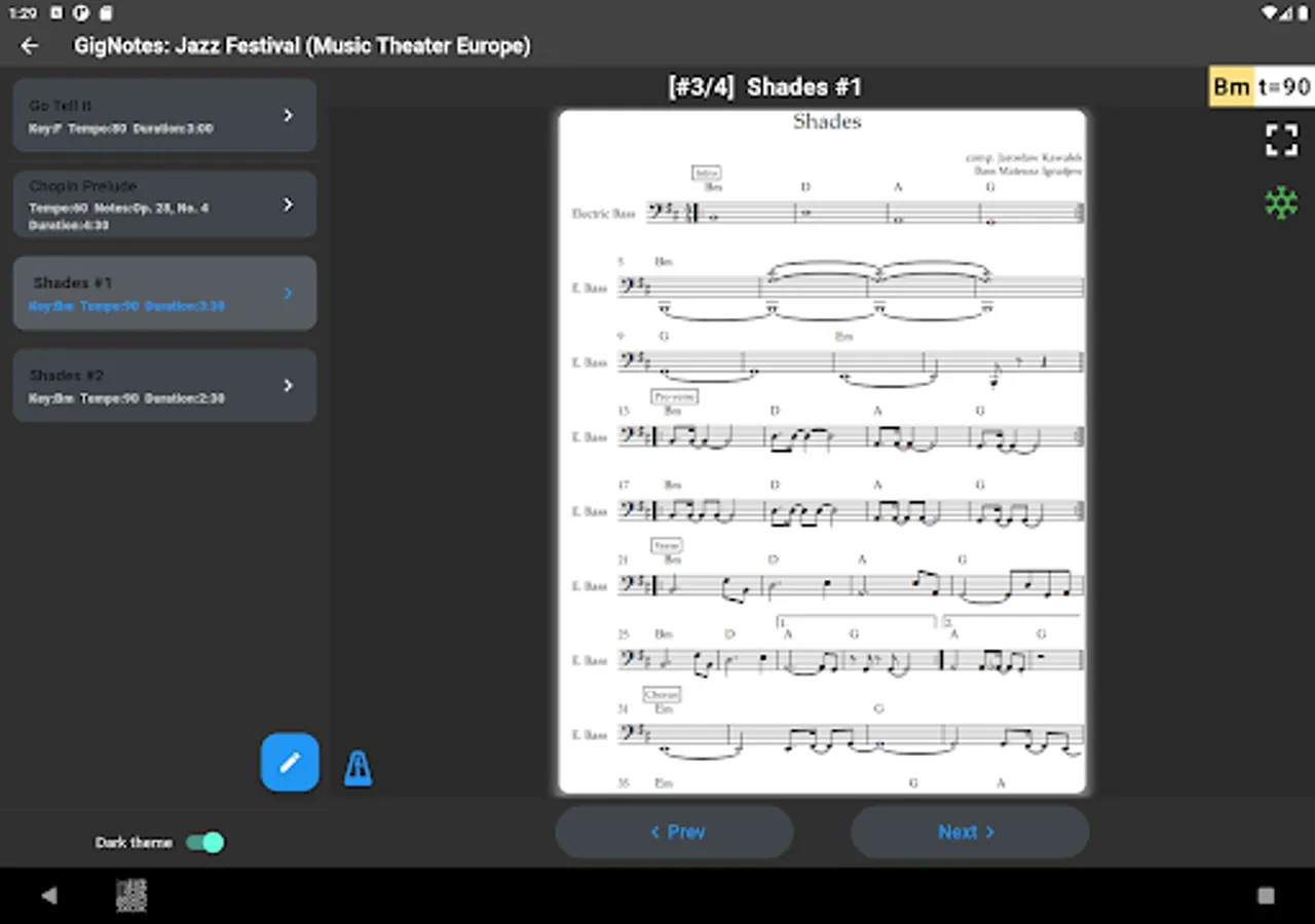 - Fully offline mode at the show – you do not need the Internet connection during the show. GigNotes is fully offline, so you can go to the gig and use your notes on your device without being connected to the Internet.