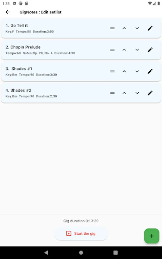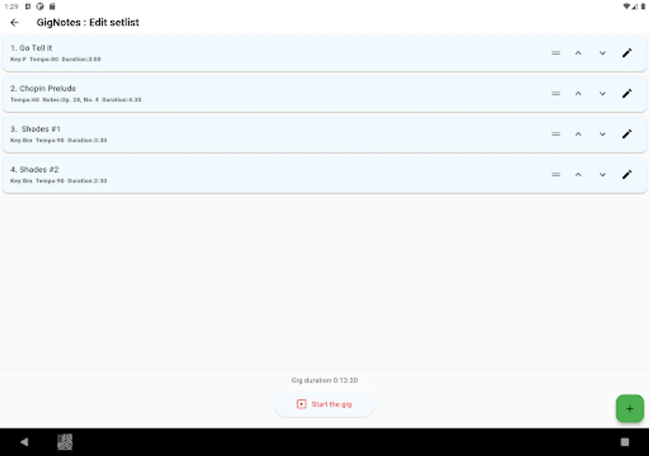 GigNotes helps to prepare music notes and setlists for performances using a minimum of time.