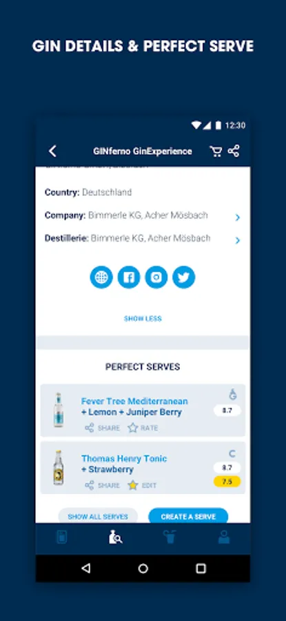 Unravel the world of gin by diving into our extensive database. Discover delicious tasting notes, real-time ratings of other users, and become an expert mixologist yourself! Create your dream “Perfect Serve” with inspired ingredients suggested by us, then rate it for others to savor.