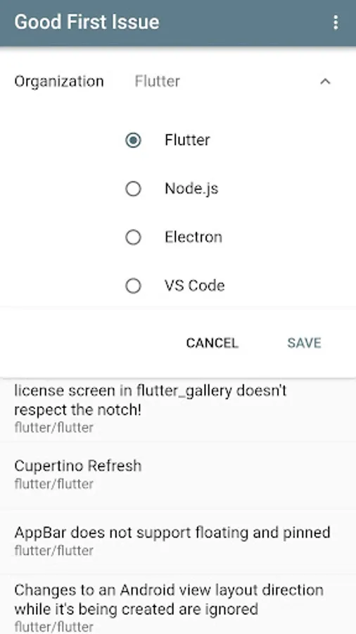 "Good first issue" displays issues from a curated list of popular GitHub projects. These issues are meant to help new contributors get acquainted with the project.