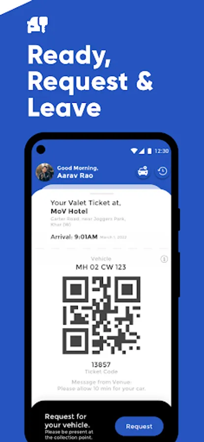 With your digital ticket, you now have access to request for your vehicle any time you like.