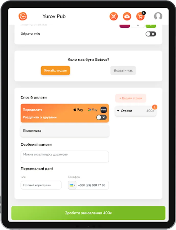 Service for ordering your favorite dishes in a form convenient for you: