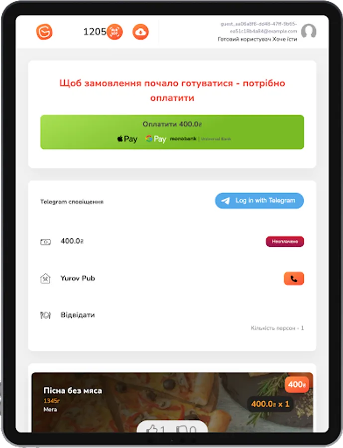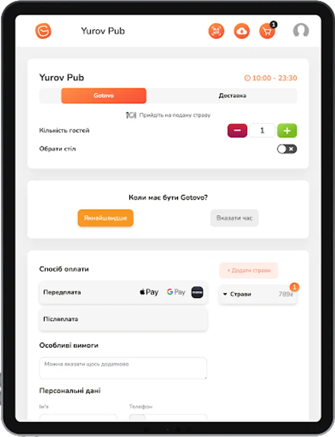• Already in the establishment, but the waiter does not come for a long time? Make an order thanks to the QR code on the table immediately to the kitchen or bar.