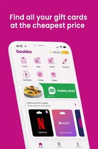 – Purchase international gift cards with Goubba credits and earn bonuses