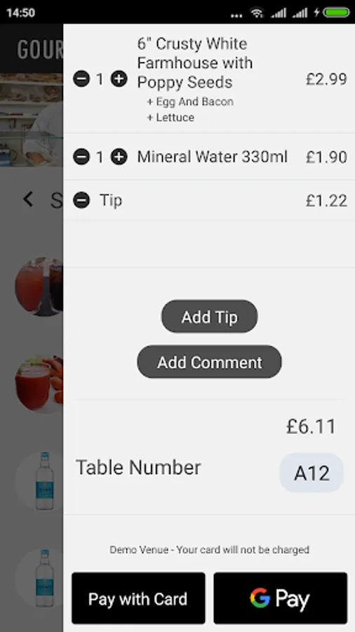 Your menu can appear within the App instantly for everyone to use that is visiting your venue. Because this service does not require a payment card terminal you can add your venue and start accepting cashless payments straight away for orders using Apple Pay, Google Pay, Visa, Mastercard and American Express. For venue operators visit my.gourmet.app to find out more.