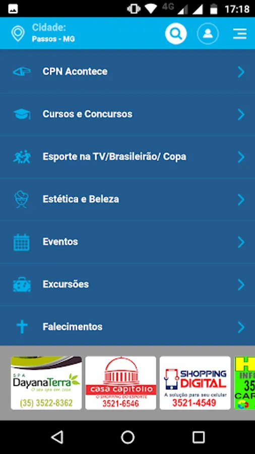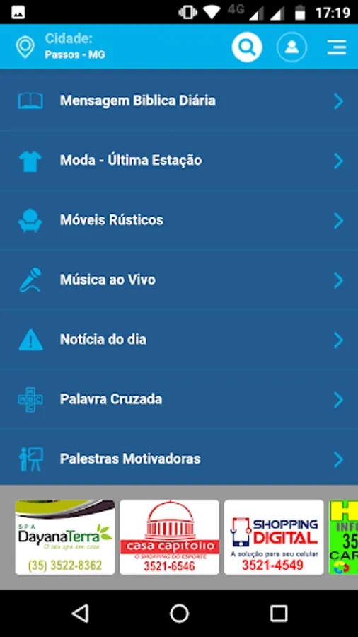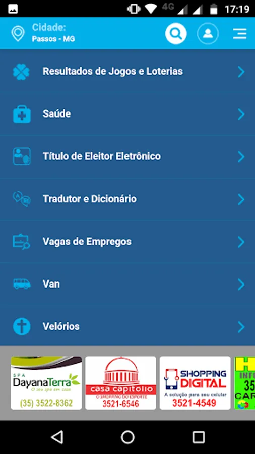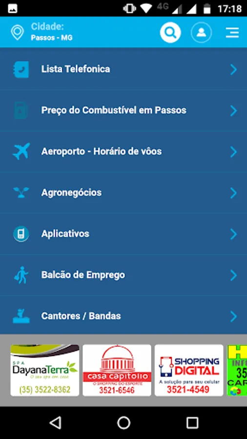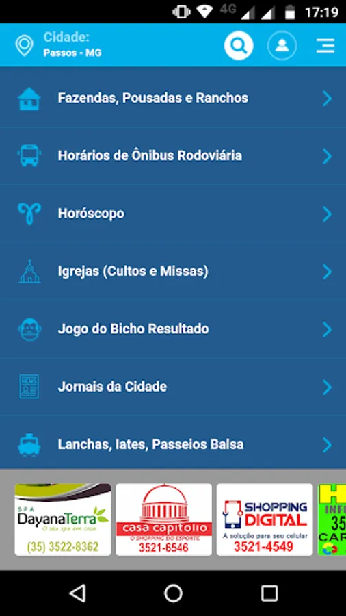 Product Search, Phonebook, Employment Desk, Singers / Bands, CEMIG / Eletropaulo, Courses / Contests, Events, Deaths, City Newspapers, Radio City, SAAE / Copasa, bus schedules and flights