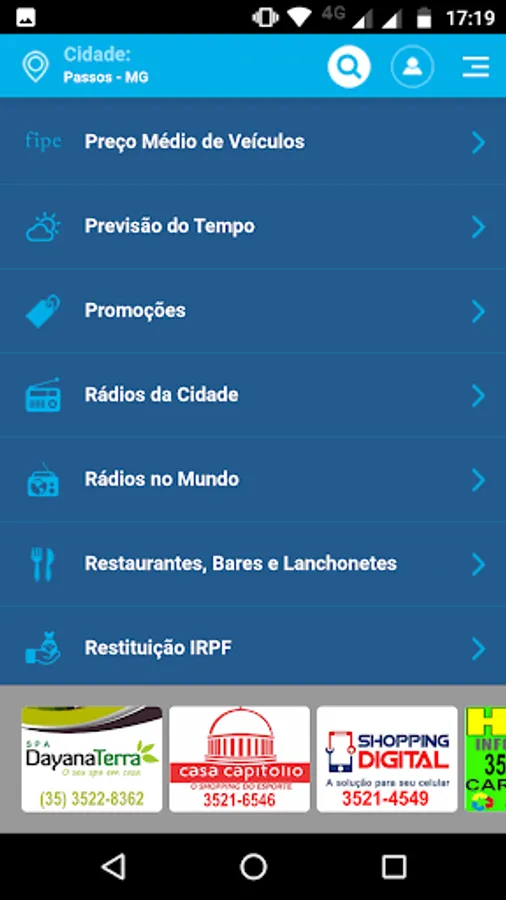 Consult Vehicle Location, Consult your CPF in SPC, Quote Dollar / Bitcoim, Sport TV / Tables, Soft Game, Games Result / Lotteries, Title Electronic Voter, Horoscopes, Translator / Dictionary, radios in the World, Weather