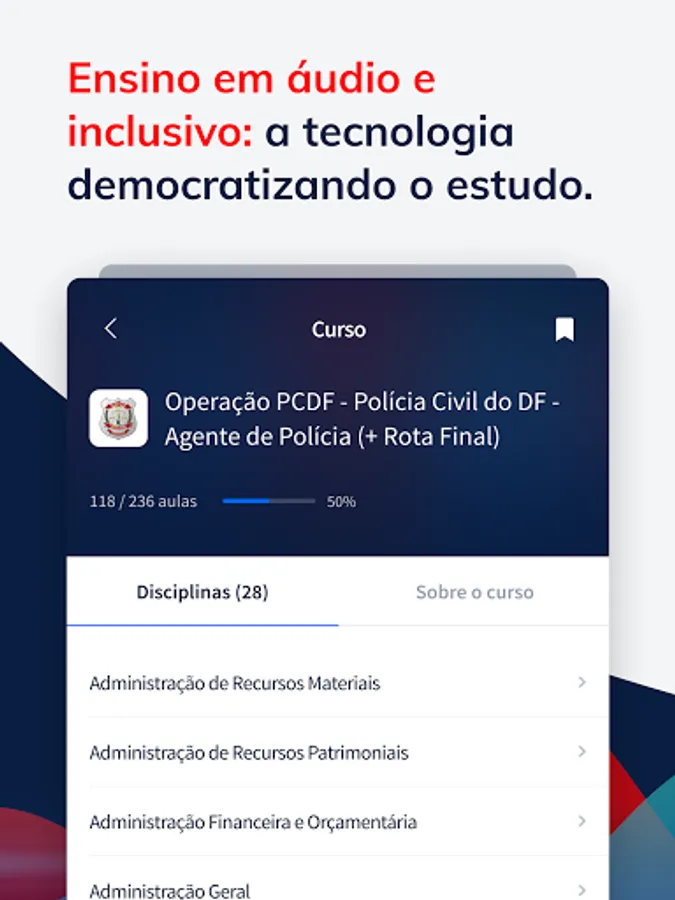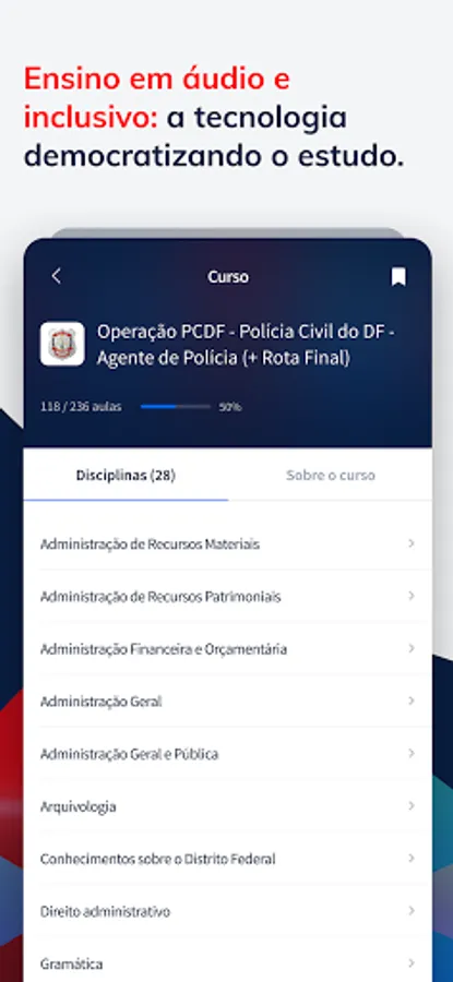 Courses and legislation for all public tenders and OAB in more than 86 thousand hours in audio, with humanized speech, to study from wherever you are: while driving, on the bus, on the bike, in the gym or at the same time doing other tasks. Your best chance to eliminate wasted time. That is, the best technology for you to study anywhere!