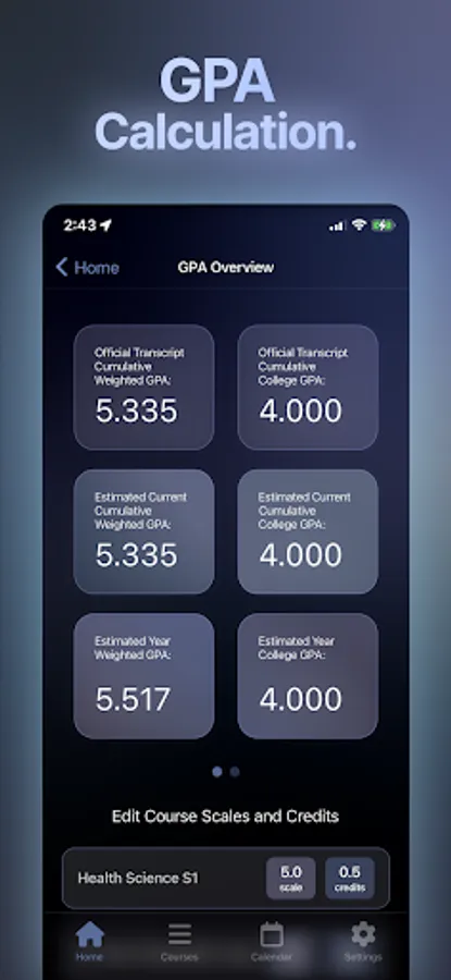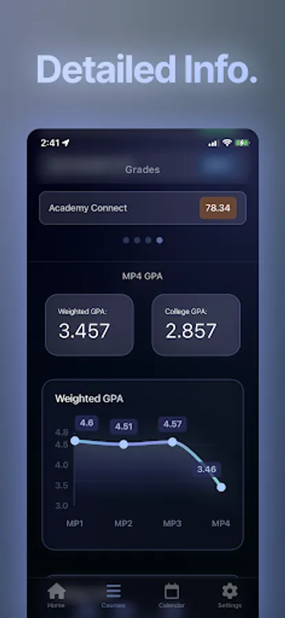 View both weighted and college predicted GPAs by cumulative, year, marking period, and even course! These GPAs can also be in Predict Mode. Additionally have the ability to adjust course scales and credits for a more accurate estimate. Furthermore, get additional insights with beautiful dynamic GPA graphs!