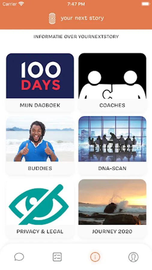 YourNextStory offers personal development programs. This app helps you with daily assignments to discover what the next steps in your life (and your career) can look like. Who are you and what really suits you? Where do you want to go? How do you make a plan for your own future?