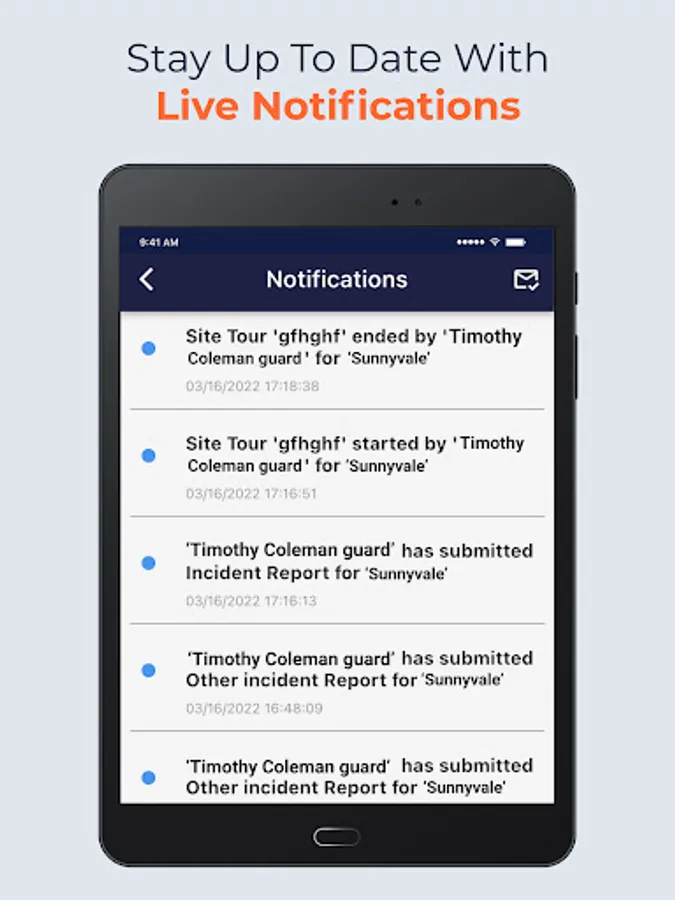GuardsPro client app is part of the GuardsPro Enterprise Physical Security Management platform which allows the clients of security guard companies to login using their client web portal credentials and monitor the security operations on their properties. Using GuardsPro Client App, the users can view a live interactive map of their property along with live guard location using GPS tracking. The users can access live updates in the form of push and in app notifications for every activity of the guard such as submission of reports, site tours, incidents etc. Besides getting updates, the user can also view reports. The GuardsPro client app is designed to make it easy to access the important information concerning the post site on the go.