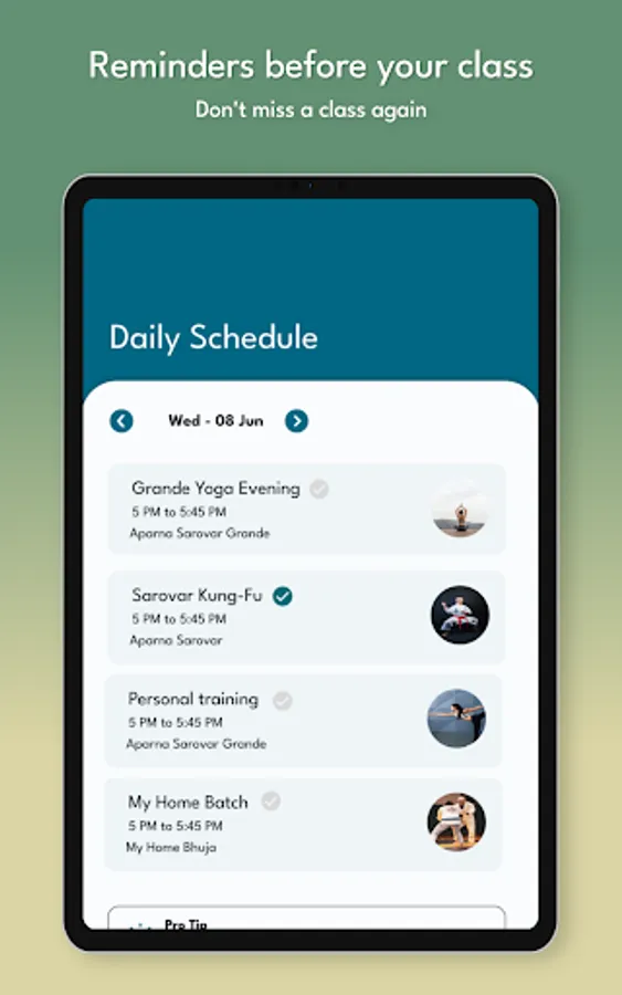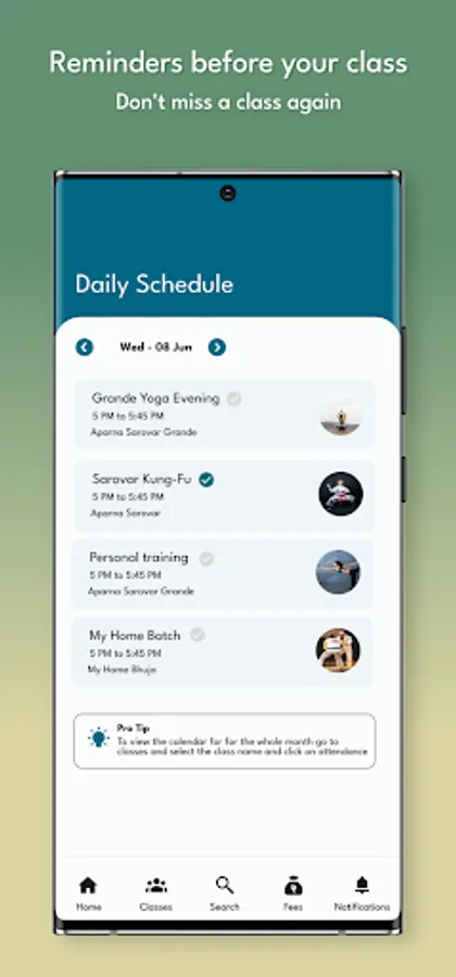 3. Get reminders for upcoming classes through app notifications. No more missing out on classes.