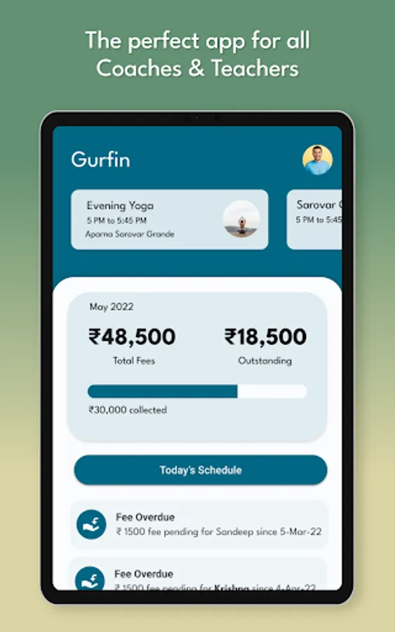 With Gurfin, you can forget about your fee management and class management, and concentrate on what truly matters- coaching and your actual skill set.