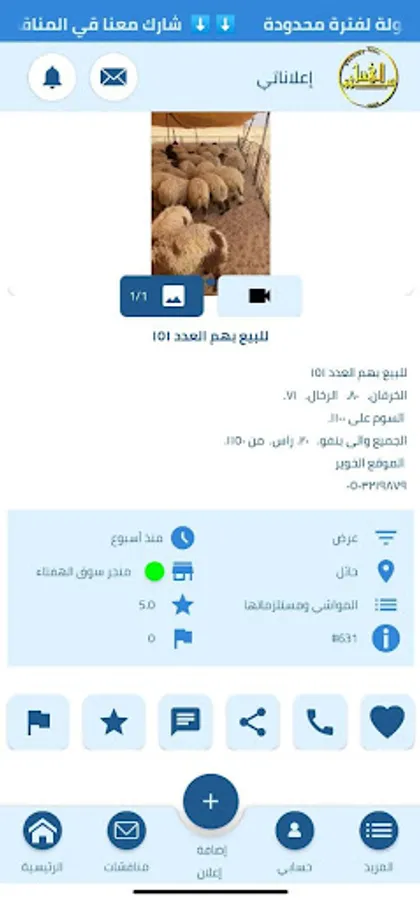 The Al-Haftah Market application offers you offers and requests according to your activity and interest, daily offers specialized in what serves animal breeding, agricultural and everything related to it specialized or service supports these areas such as selling and buying livestock and birds of all kinds, farms renting and selling, transport renting and selling, doctors and veterinary pharmacies Labor and other things that serve the breeder and farms