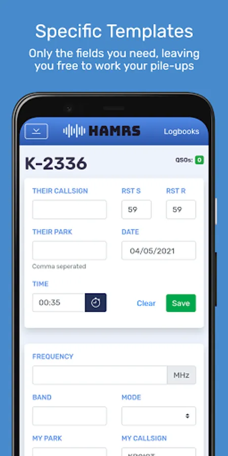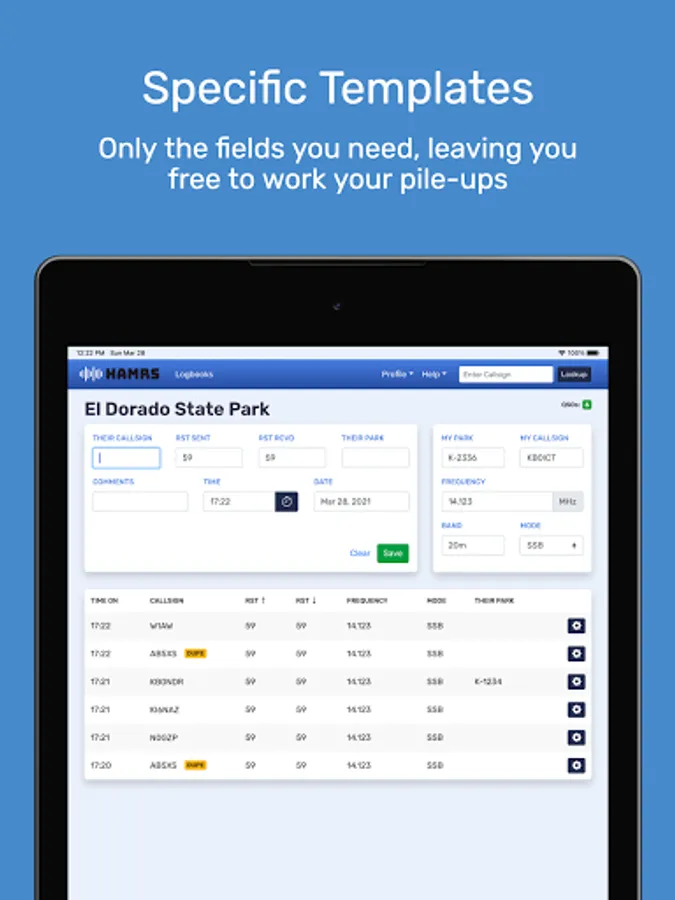 HAMRS is a simple amateur radio logger, with templates tailored to portable activities like Parks on the Air, Field Day, and more.
