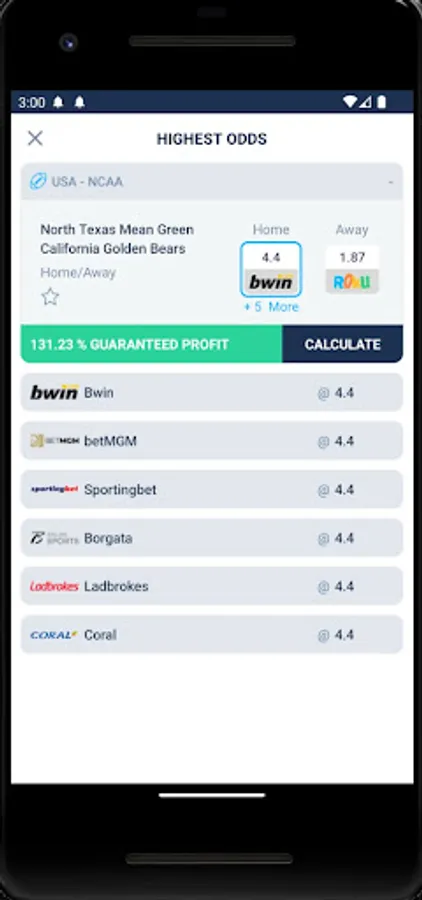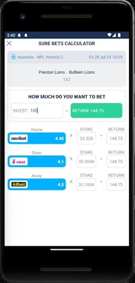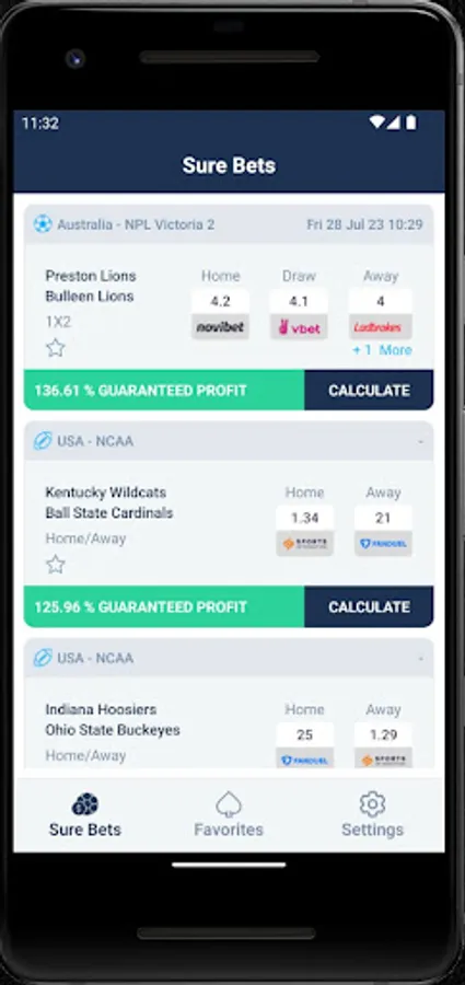 Our app surebet calculator will greatly facilitate your work, allowing you to instantly find and automatically calculate sure bets at any bookmaker.
