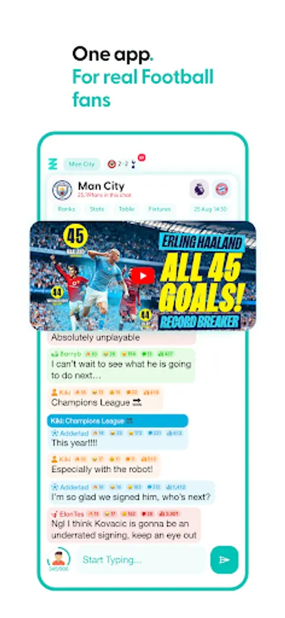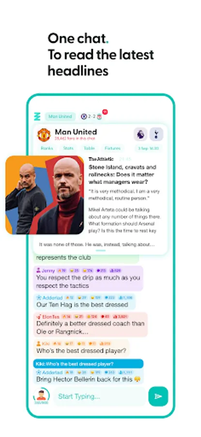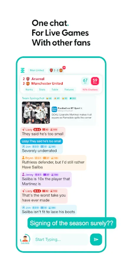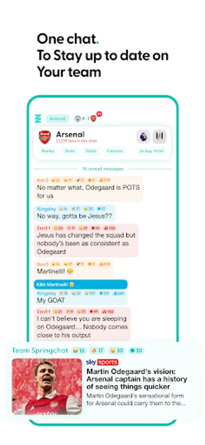 When there are no upcoming live matches, enjoy keeping up to date with all the latest football news, tweets and videos in one seamless Teamchat!