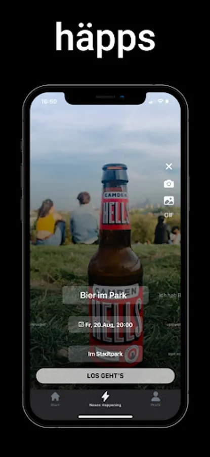 With happs you can design your events as you please, whether with a funny photo from your media library or a gif animation that fits the planned event. Everything is quick, easy and secure with the happs app.