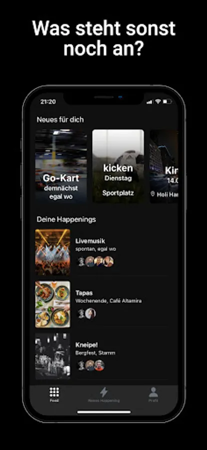 With happs, you can see all planned activities clearly arranged in the shared feed and add to or change them at any time. No matter whether you planned the event or were invited. One app for all your meetings with friends, family,