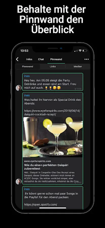 News, pictures, videos and links can be pinned to the created happening so that the most important information is always up to date.