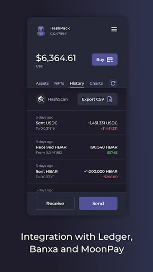 HashPack supports an NFT gallery, peer-to-peer NFT trading, native HBAR staking, free account creation, multi-account support, address books, and HTS support. It has seamless Ledger integration and the ability to buy HBAR in-wallet using Banxa and MoonPay. You can also connect securely with your favourite Hedera dApps, using HashPack to approve transactions while keeping your private keys safe.