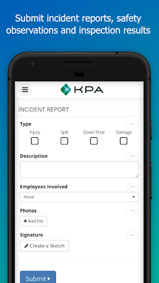 The app streamlines accident, near-miss, and safety observation reporting by making collection and management processes easy and intuitive. Submit reports, include photos, videos or even a sketch, in the field, all from your smart phone or tablet.