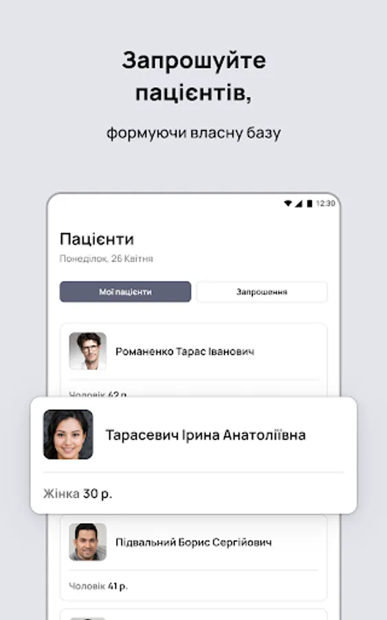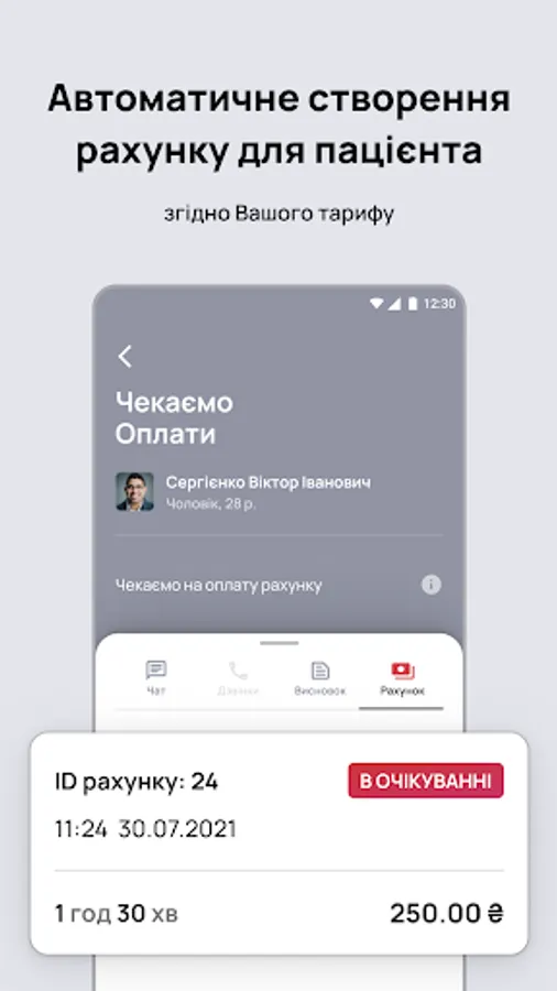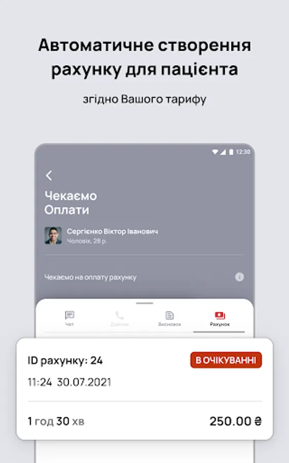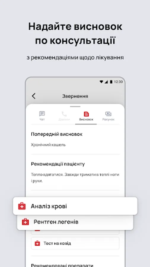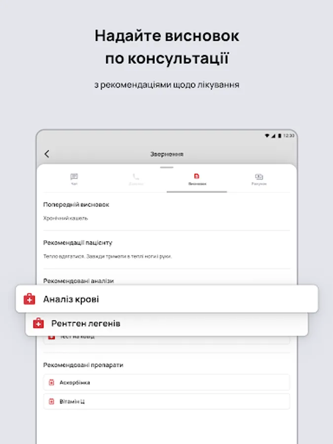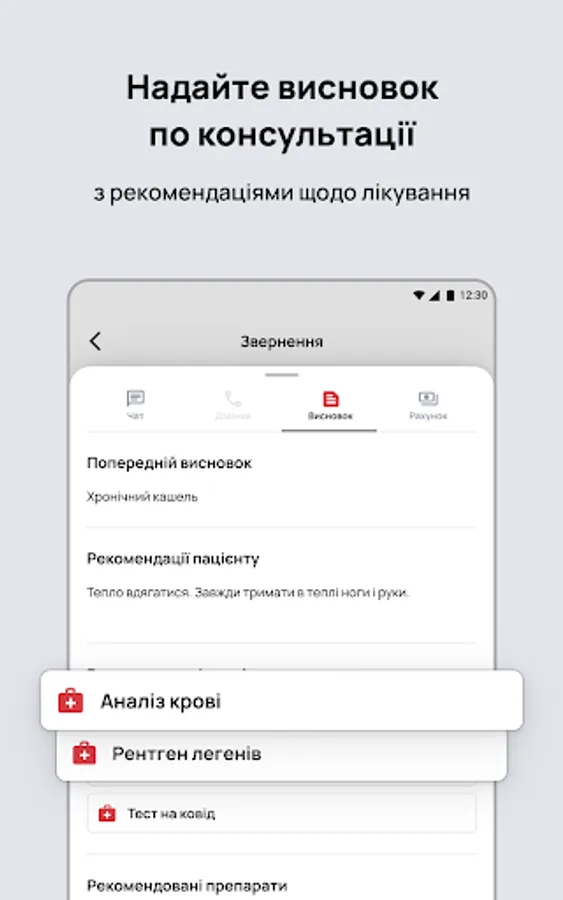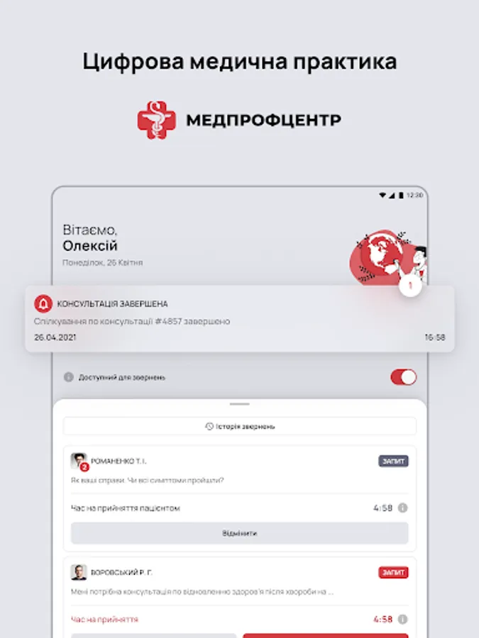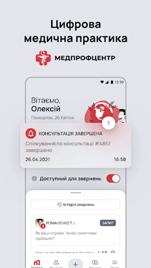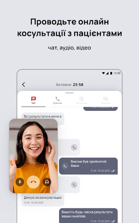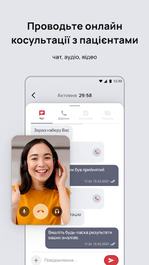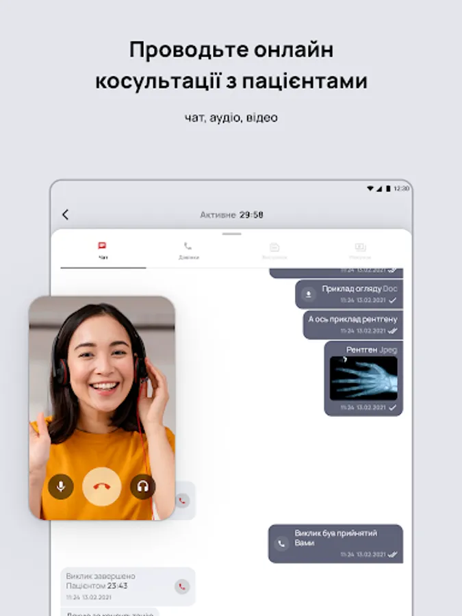 - Receive requests for a consultation, spend it in a chat mode and share files.