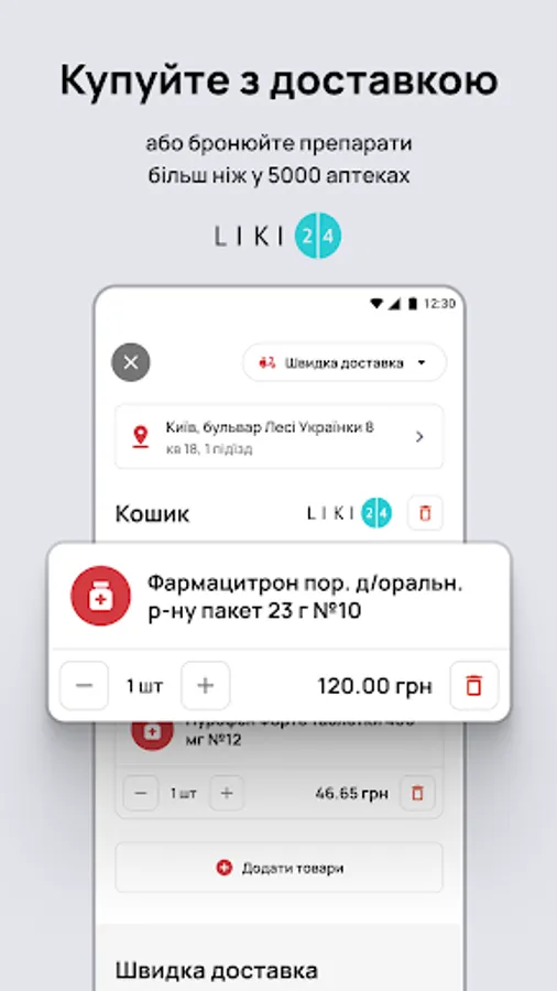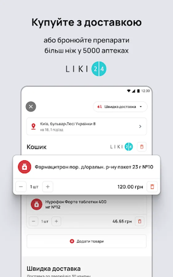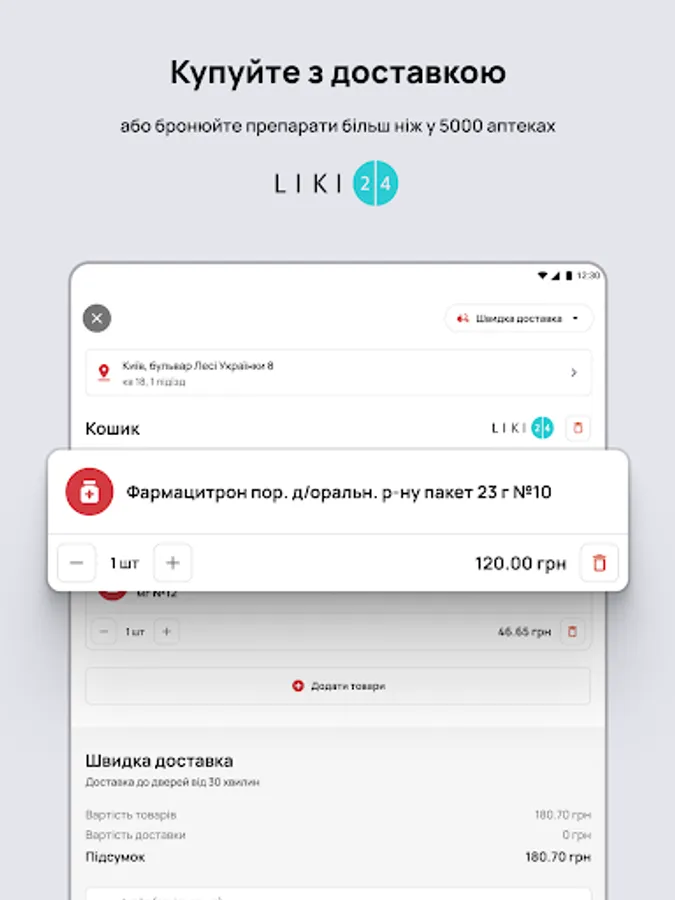 - selection of prices and analogues of drugs according to the user's location or selection of Liki 24 delivery.
