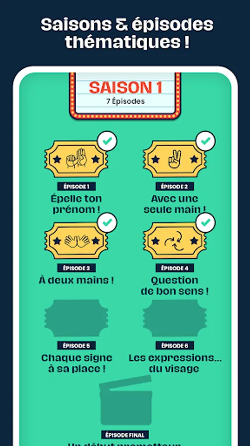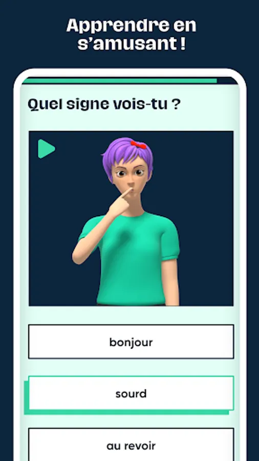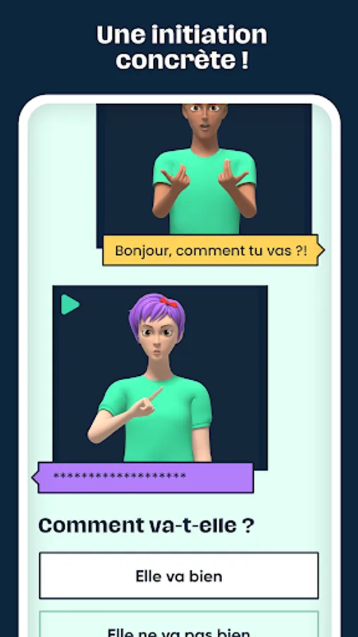 The discovery goes through interactive games in which you have to alternately spell words, reconstruct sentences or recognize signs.
