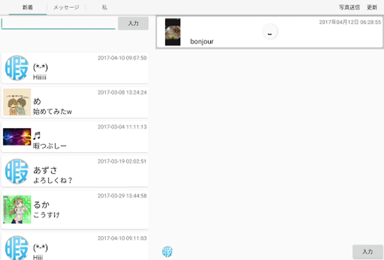 With this application you can share a message that all users can see and exchange messages. Of course, you can also send messages, pictures and stickers to people you are interested in.