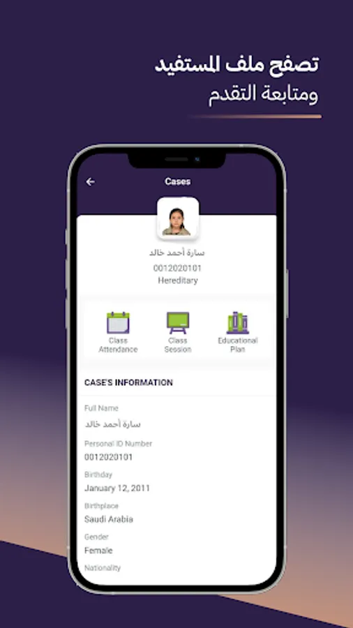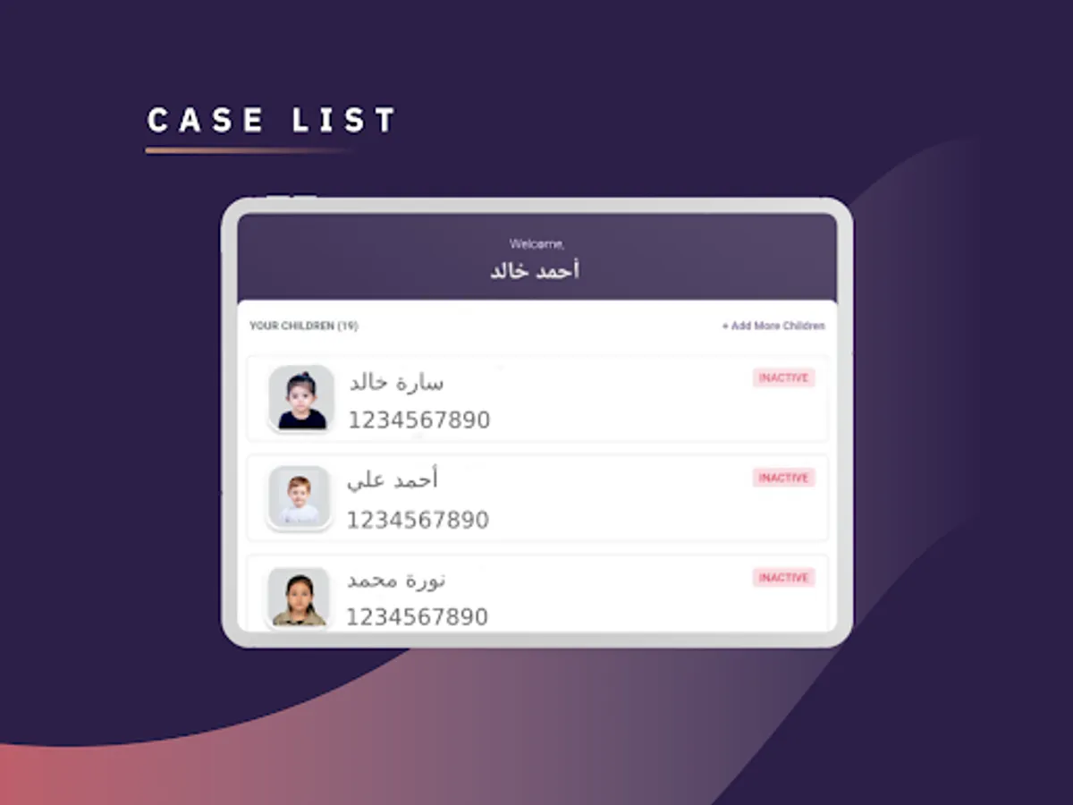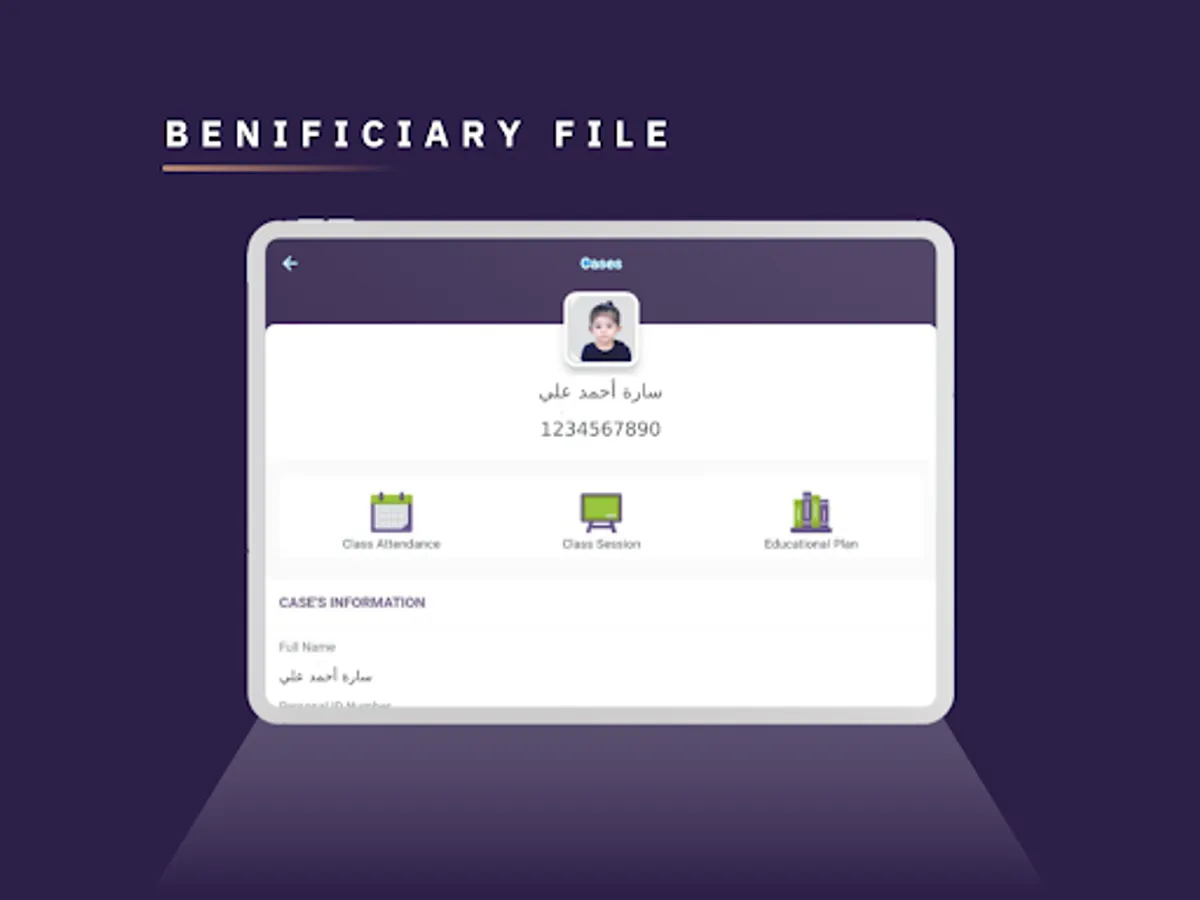 The application allows the user to access his personal profile and show his information including his assigned children’s cases with their individual educational plans.