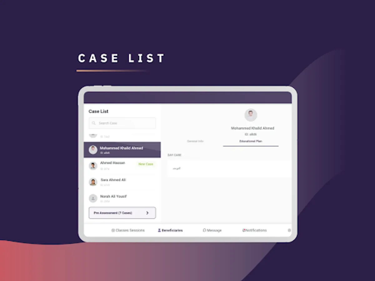 The application allows the user to access his personal profile and show his information including his assigned student’s cases with their individual educational plans.