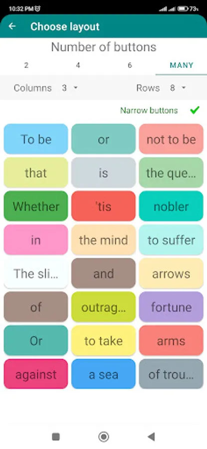 This application will speak for you in a situation where it is not possible to use your own voice. For example, at a dentist appointment, you can use it to report on your well-being and sensations while your mouth is wide open. Settings allow you to select the desired number of buttons, their colors and assign any word or phrase to each button.