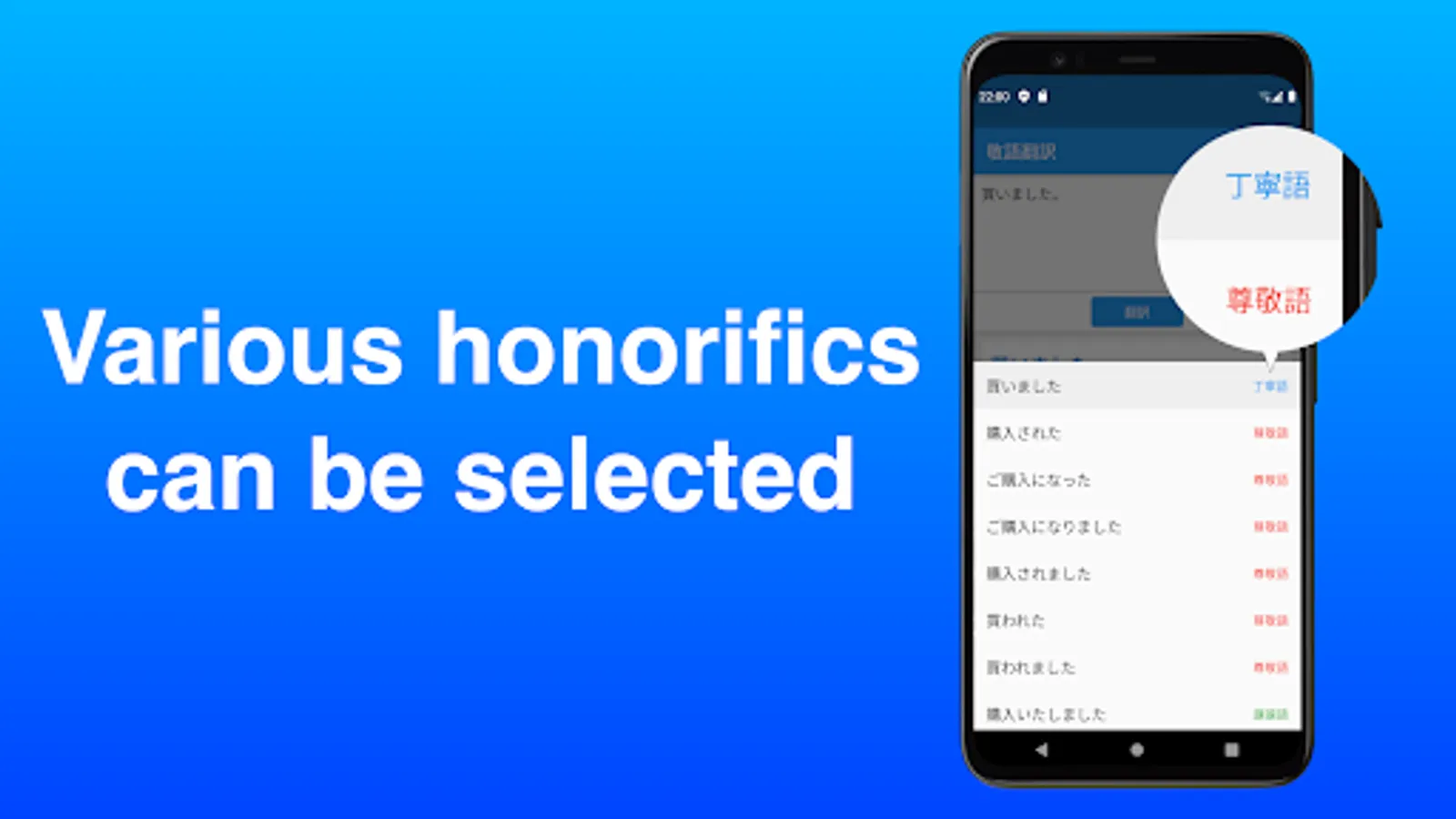 Notice: Honorific Converter is not translation app to Japanese. This app is for people with a certain level of Japanese ability.