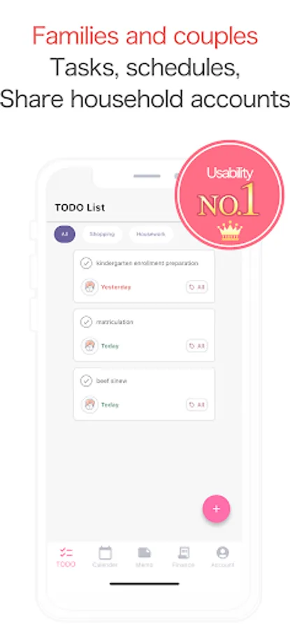 In addition, partners will receive notifications (due date notification, completion notification), so there is no need to send a message saying "Check it out!". There will be no omissions in the daily schedule, and the number of fights between families and couples will be reduced.