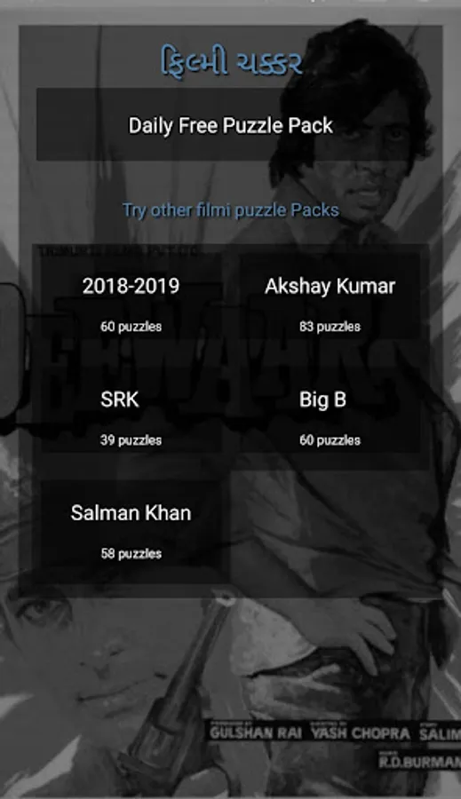 Filmi Chakkar - Gujarati is the online FREE version of popular movie quiz version. No popup ads in between.