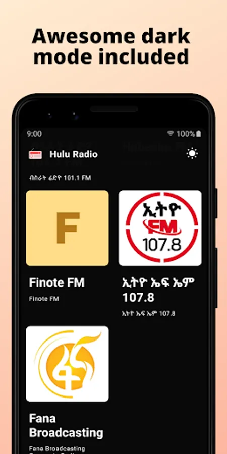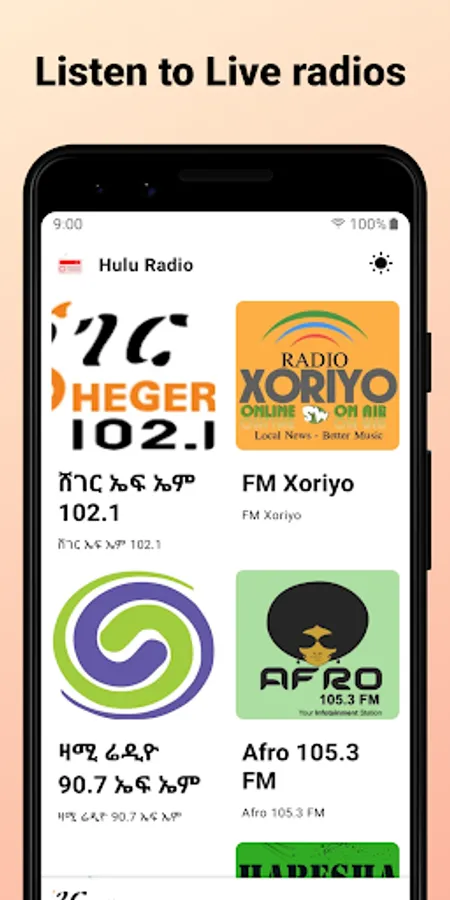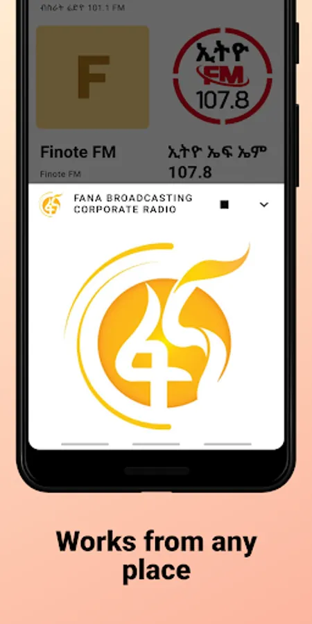 Ethiopian radios app brings a large collection of your favorite radios and FM stations from Ethiopia streaming live on your android devices. Now enjoy listening to the online radio broadcasts and music from Ethiopia live on your android phones and tablet devices with just tap of a button, no matter where you are.