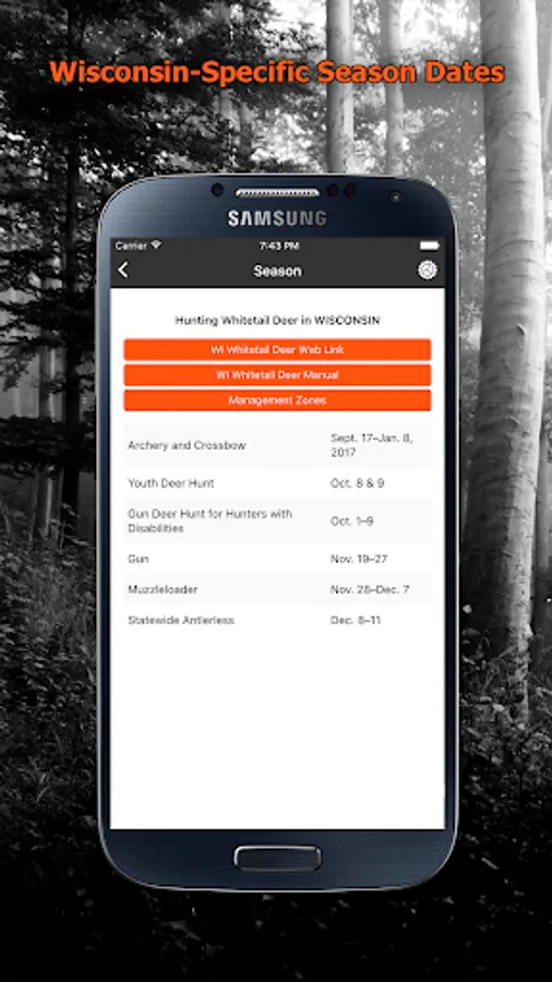 - Quickly reference the Wisconsin DNR's Deer, Turkey, Waterfowl and Bear season daily hunting hours for your location using exact start and stop times based on your GPS or chosen County/Zone