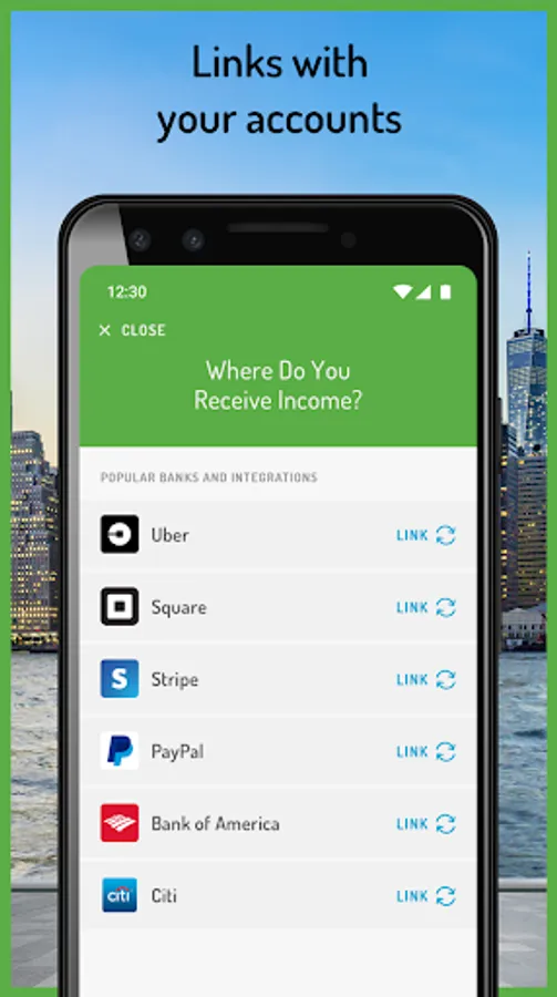 Hurdlr connects with thousands of leading banks as well as Uber, FreshBooks, Square, Stripe, and Paypal to import your income and expenses automatically for easy income tax calculations.