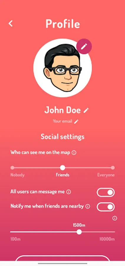You and your friends can follow each other’s location on a real time map, create your own avatars, navigate to meet each other, chat, and get notified when a friend comes within your set range. Choose to show your position or go invisible at any time.