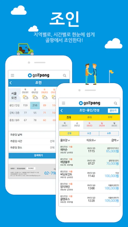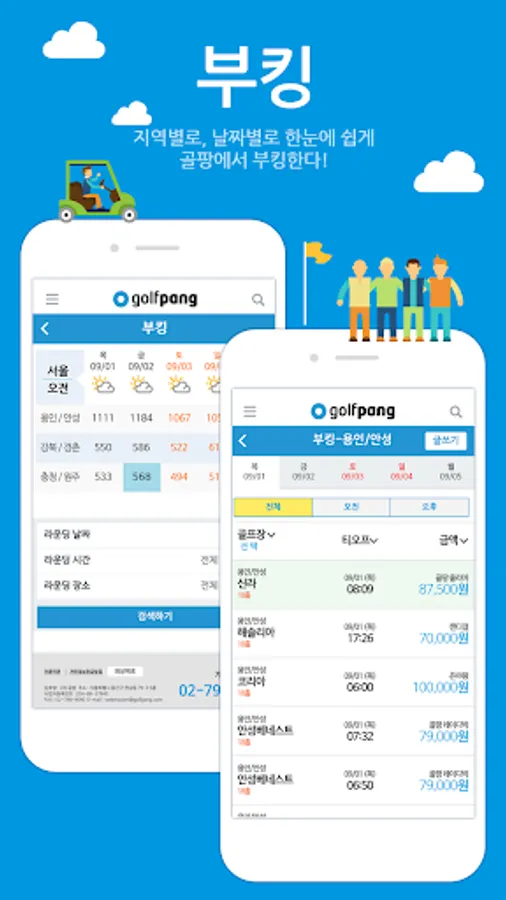 By date, you can use golf courses south of the Han River, Gangbuk/Gyeongchun, and Chungcheong/Wonju at low green fees.