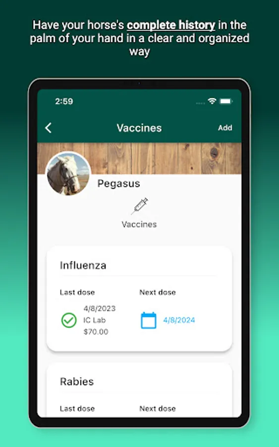 Have the history of all your horses in the palm of your hand!