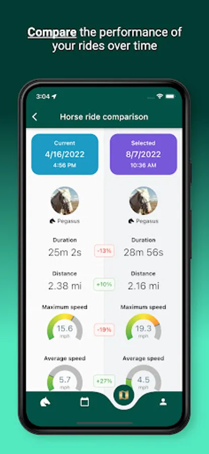 - Compare routes and find out which one requires more of your horse in terms of distance and altitude variation
