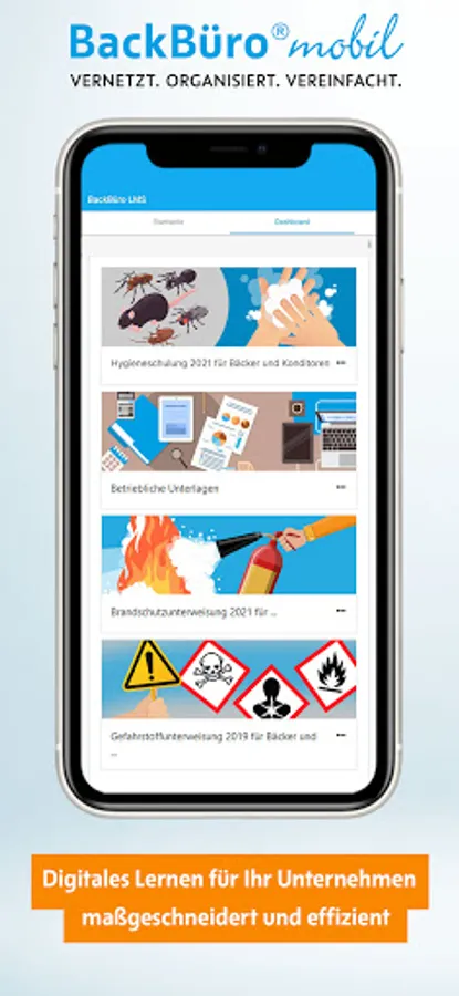BackBüro® mobil e-learning offers companies in the baking trade a simple solution for meeting the legal requirements for regular training courses - as well as advanced training courses or company-specific learning content.